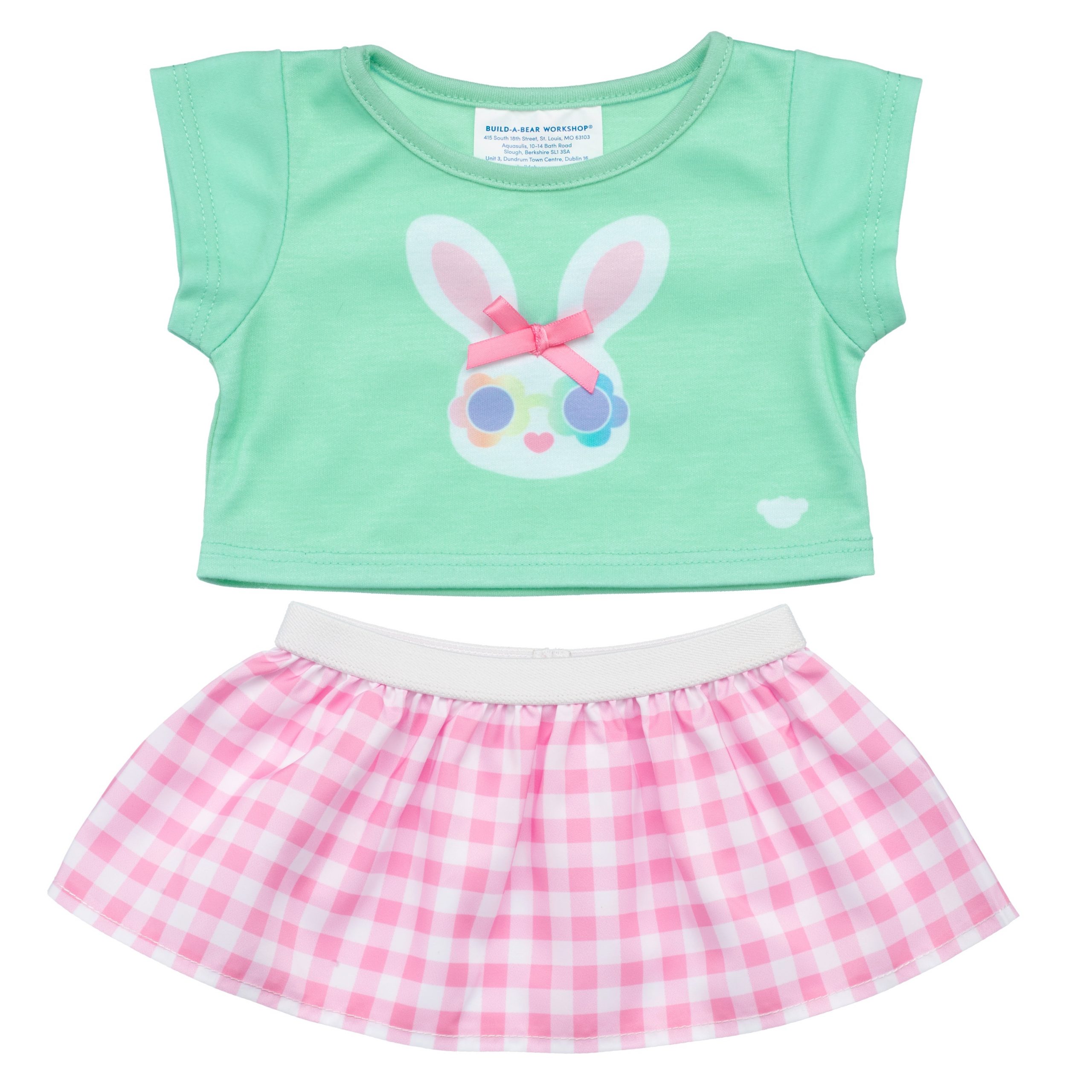 BUILD-A-BEAR clothes gingham bunny skirt set